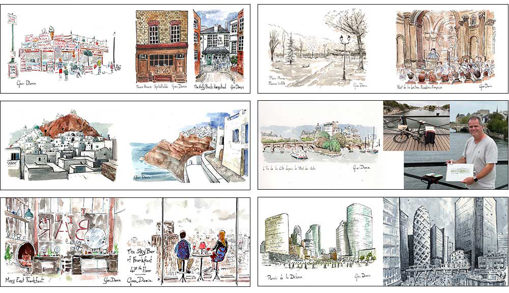 Ce livre auto-édité rassemble mes carnets de voyages réalisés sur le vif, directement sur place, à la plume et à l’aquarelle. Plus qu’un récit, c’est une promenade visuelle qui vous emmène de la France à l’Italie, en passant par l’Espagne, la Grèce, l’Allemagne et l’Angleterre.