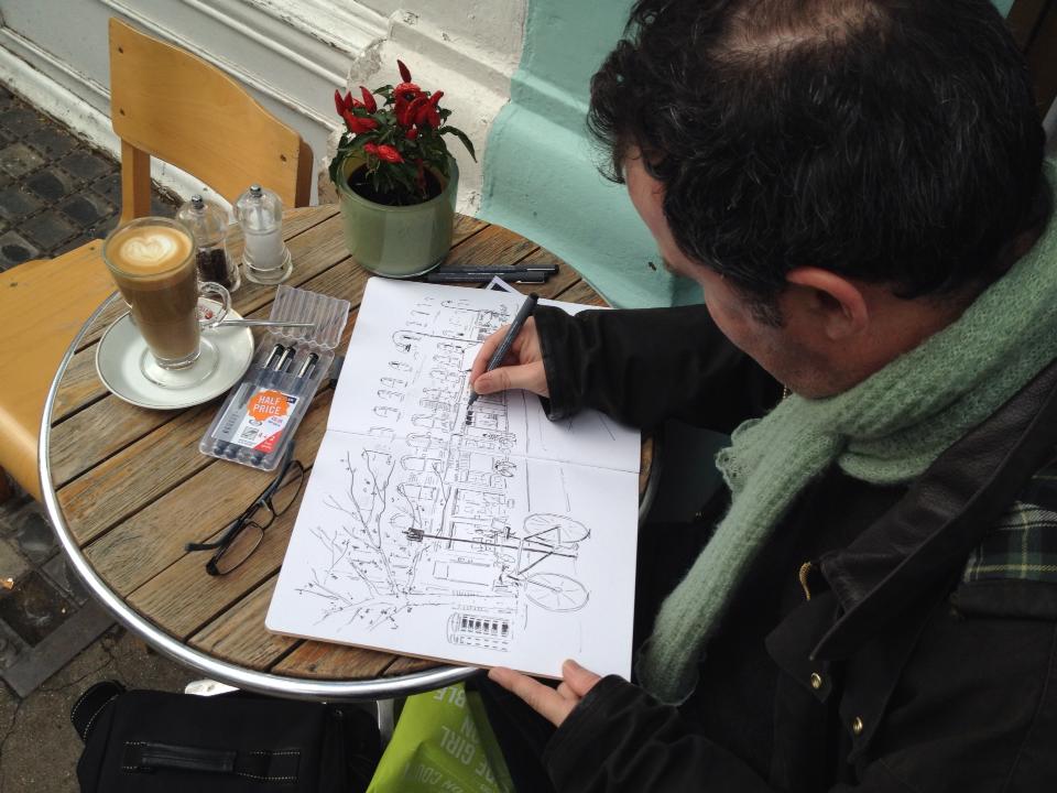 J’ai également pu rencontrer les Urban Sketchers de la région de Francfort, avec lesquels nous avons dessiné dans nos carnets tout un après-midi : un moment unique de partage comme je les apprécie tant.
